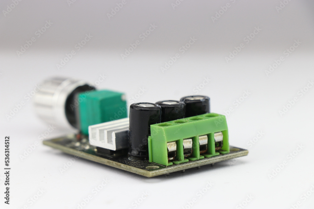 Fotografie DC Motor speed controller board that regulates motor speed using pulse width mod
