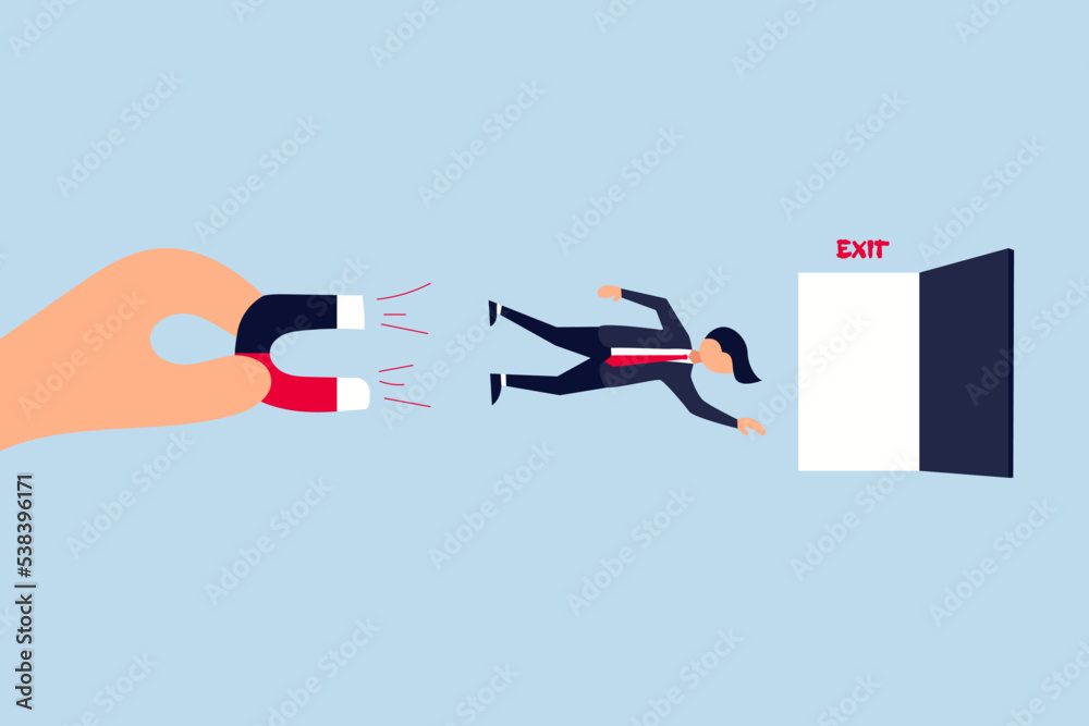 Fotografie reduce resignation rate for important talent, boss holding magnet to pull back resigned or leaving employee