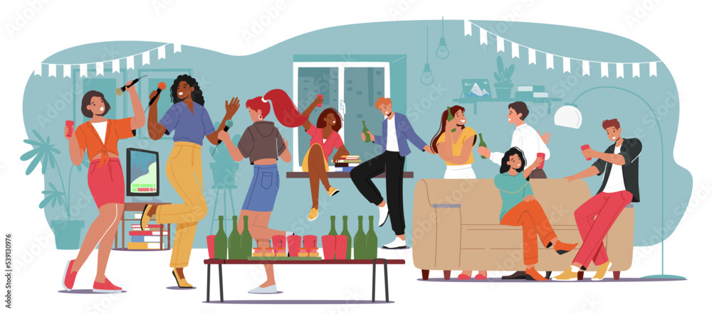 Fotografie Home Party Fun, People Meeting, Celebrate Birthday or Corporate in Room