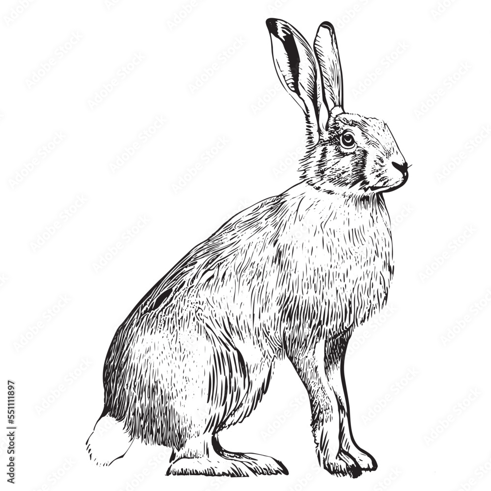 Fotografie Hare sitting sketch engraving hand drawn Vector illustration