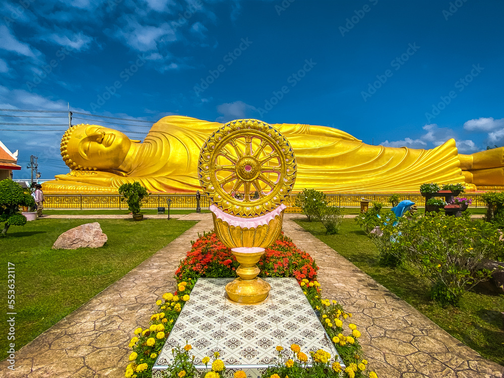 Fotografie Wat Laem Pho temple with reclining golden Buddha in Songkhla, Thailand