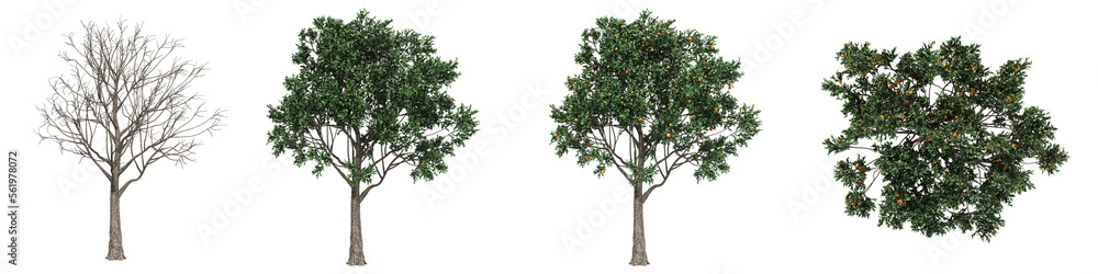 Fotografie Apple tree collection isolated PNG transparent background, for architectural visualization garden design