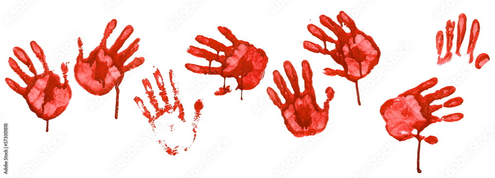 Fotografie Bloody handprint, red spray stain isolated on white