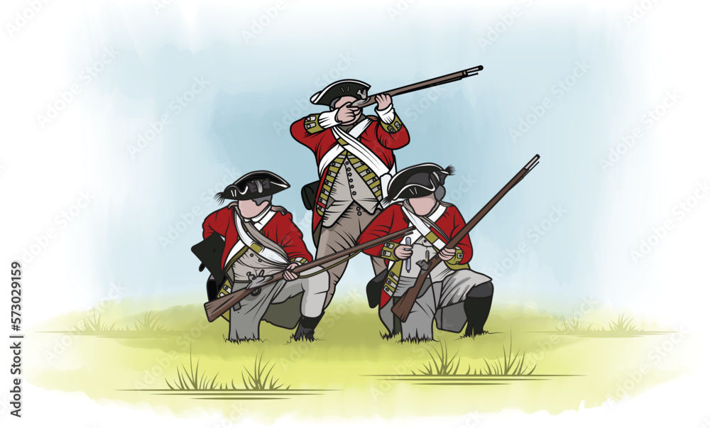 Fotografie Vector illustration of a group of British soldiers from the late 18th century, during the time of the American revolution