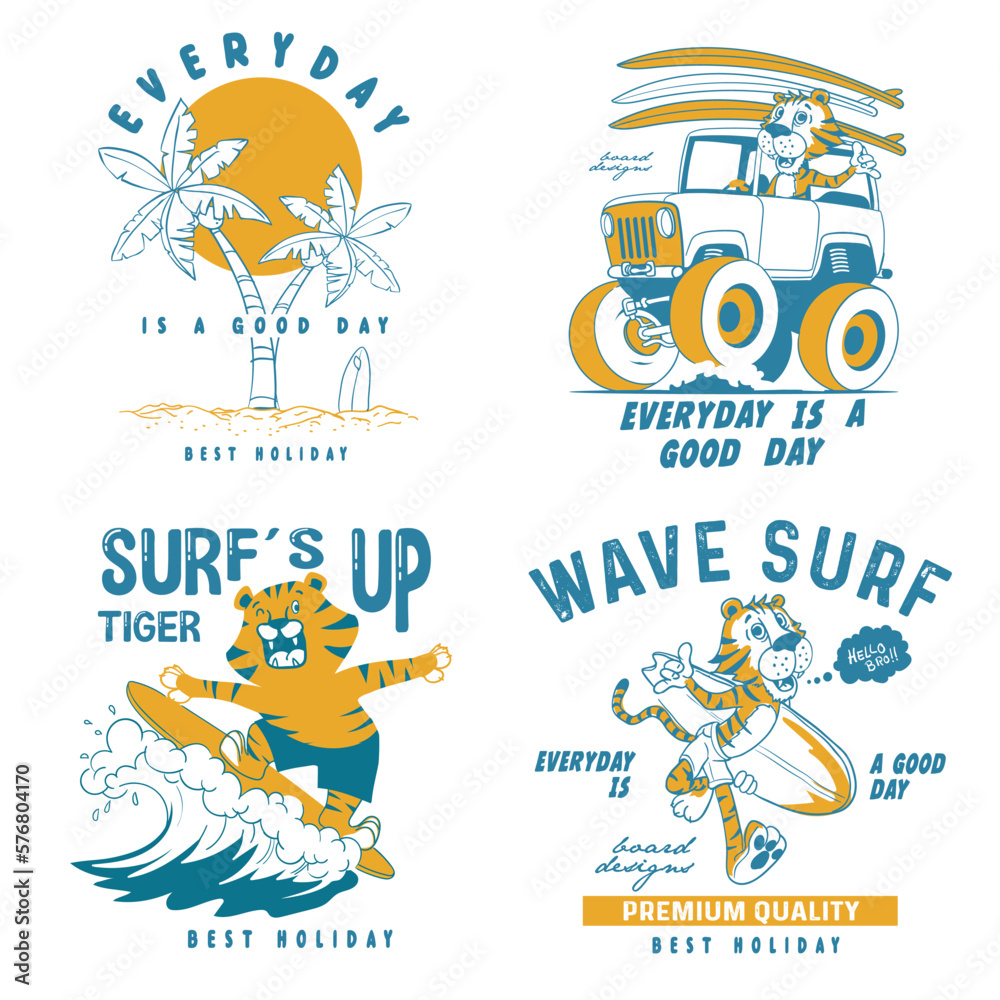 Fotografie Vector animal surf character illustrtion for t shirt prints