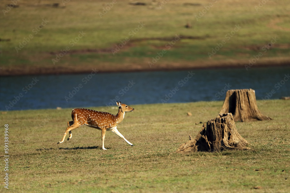 Fotografie The chital or cheetal (Axis axis), also known as the spotted deer, chital or axis deer