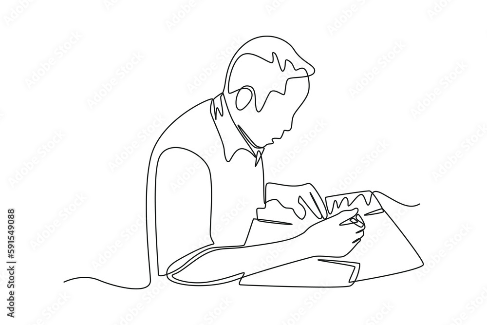Fotografie Single one line drawing customer fill out submission form in bank
