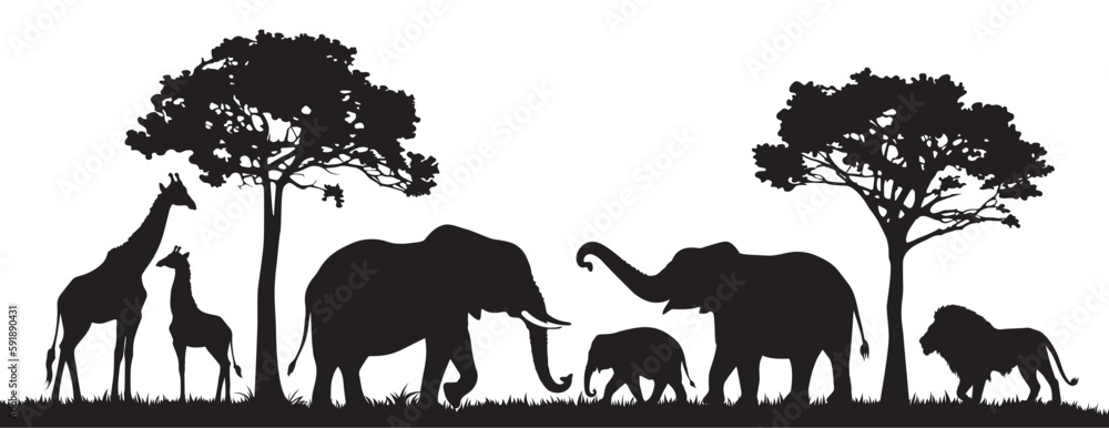 Fotografie Silhouette of animals in the savannah