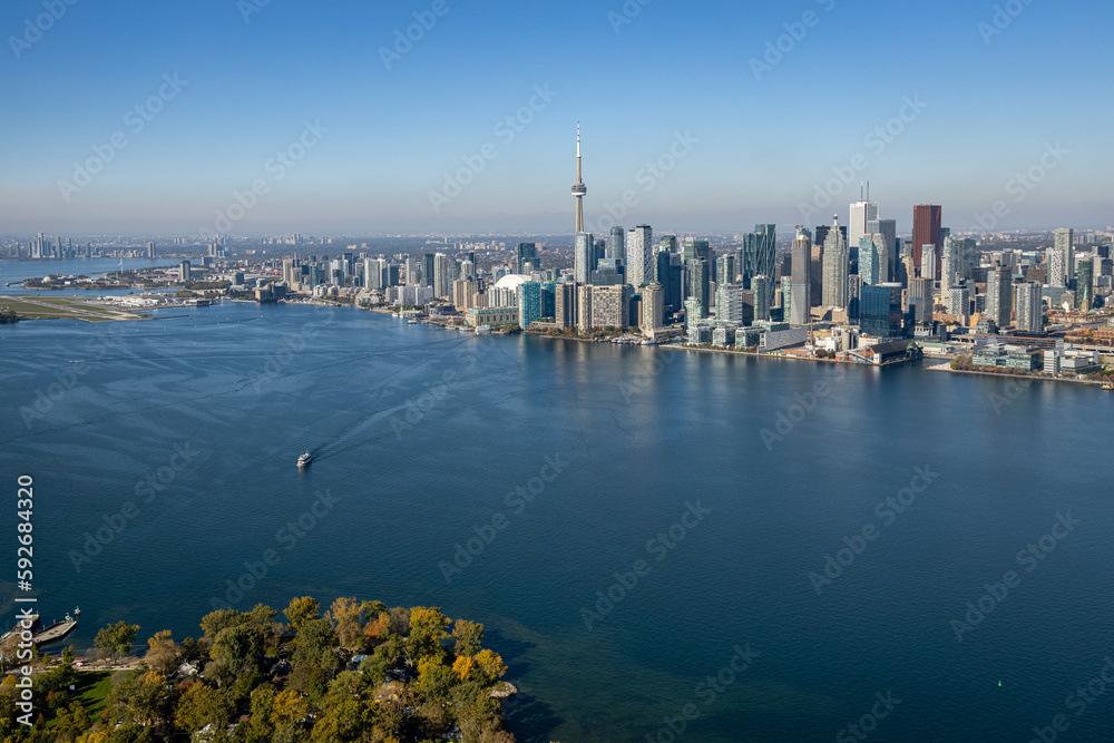 Fotografie An aerial view of Toronto Skyline from over Wards Island with the Island Ferry in the foreground