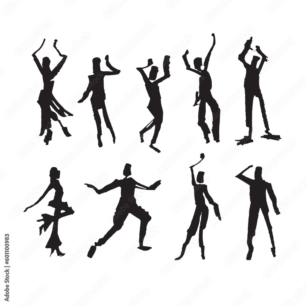 Fotografie Vector hand-drawn silhouettes of dancing people