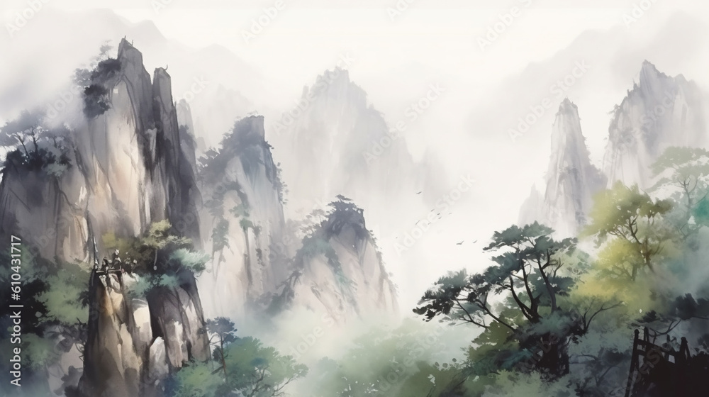 Fotografie Watercolor landscape of mountains in China