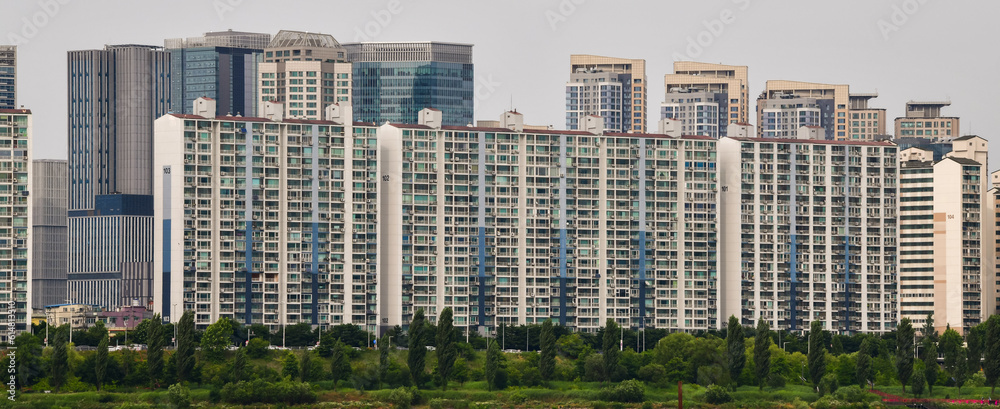 Fotografie Apartments and Buildings along the Han River in Seoul