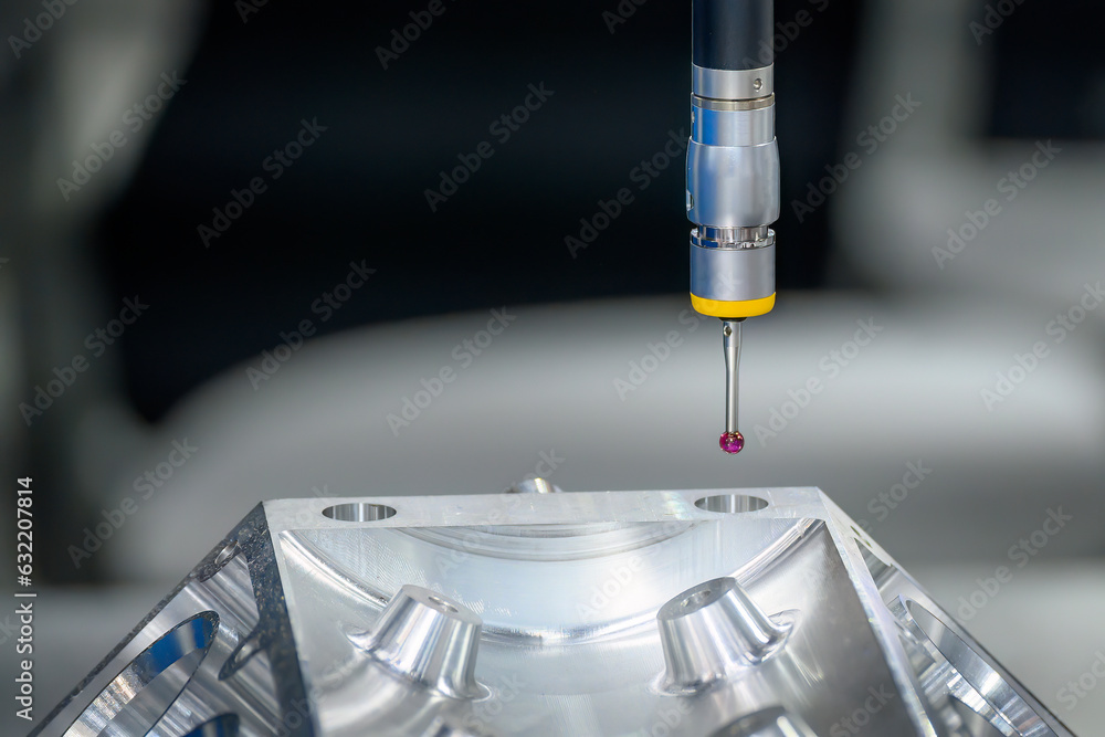 Fotografie The CMM machine measuring the aluminum V8 cylinder block parts .