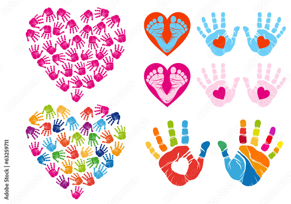 Fotografie hand print hearts, vector set
