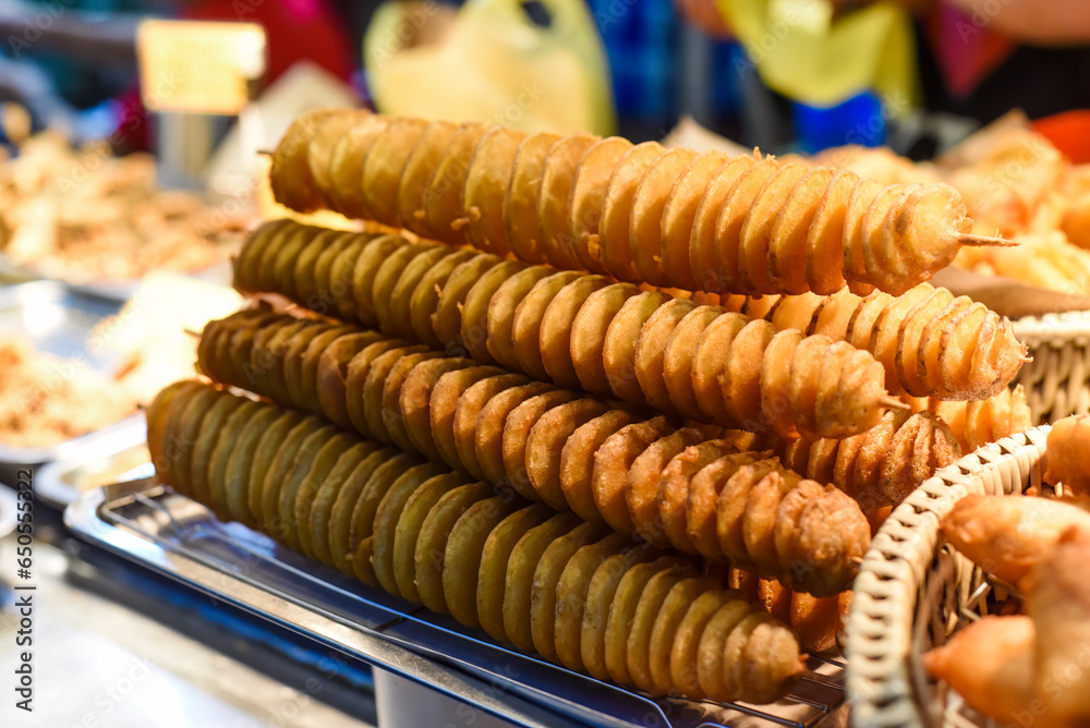 Fotografie Twisted potatoes in the night market of street food Jalan Alor in Malaysia