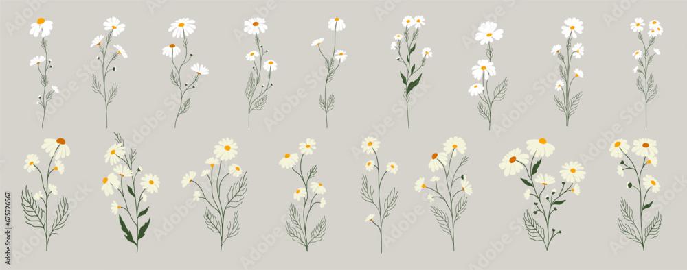 Fotografie Set of daisy flowers. Chamomile illustration. Vector.