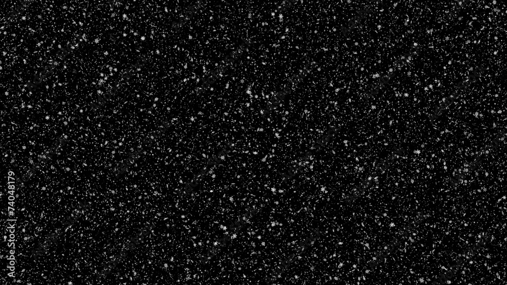 Fotografie snow falling, lots of realistic detailed 3d snowflakes on black