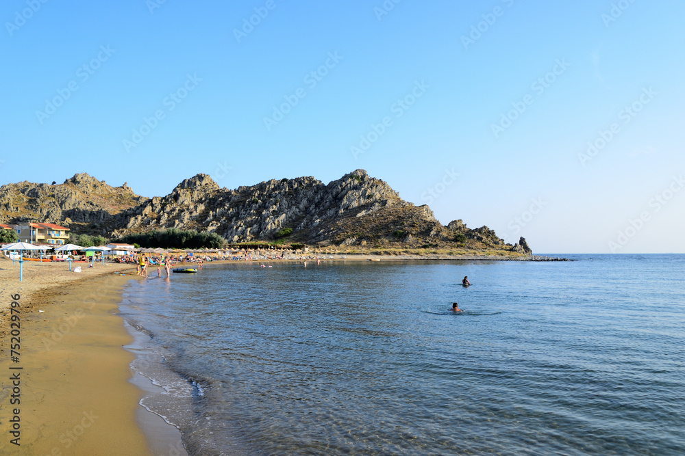 Fotografie sun and sand at beach - Thanos beach, Lemnos island, Greece, Aegean sea