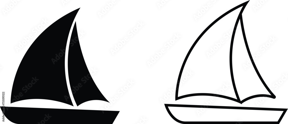 Fotografie Sailboats vector set For Print, Sailboats vector Clipart, Sailboats , Black shape of a sailboat is in a side view, isolated on transparent background, Sea yachts