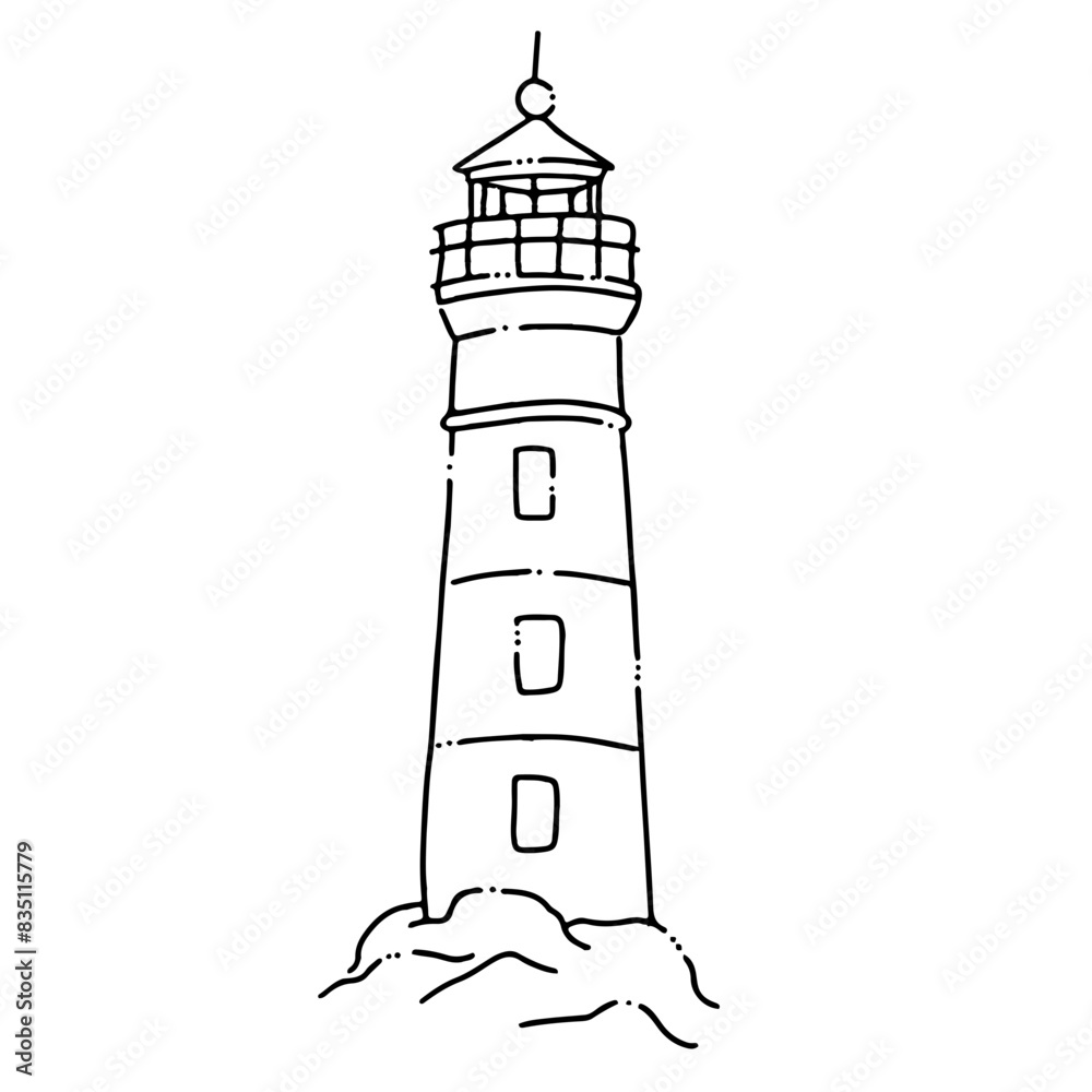 Fotografie Illustration au trait noir d'un phare breton