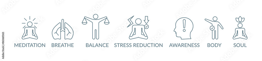 Fotografie Mindfulness banner concept illustration with icon meditation, breathe, balance,