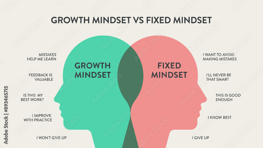 Fotografie Growth mindset vs Fixed Mindset vector for slide presentation or web banner