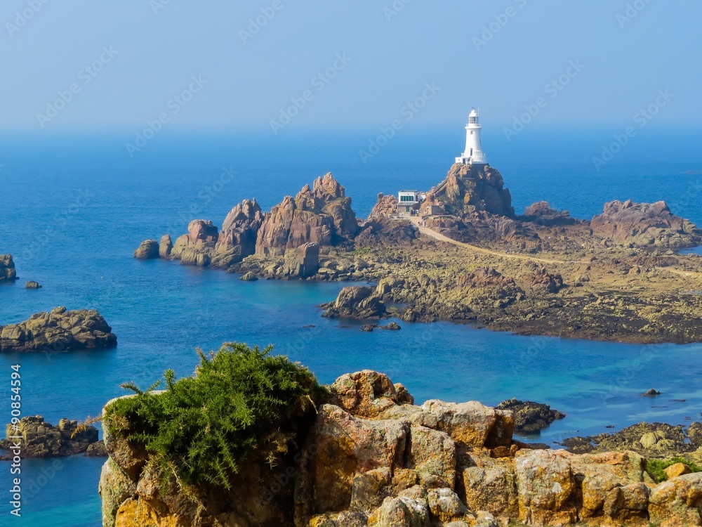 Fotografie Field plant in the foreground and La Corbiere Lighthouse in a haze as background