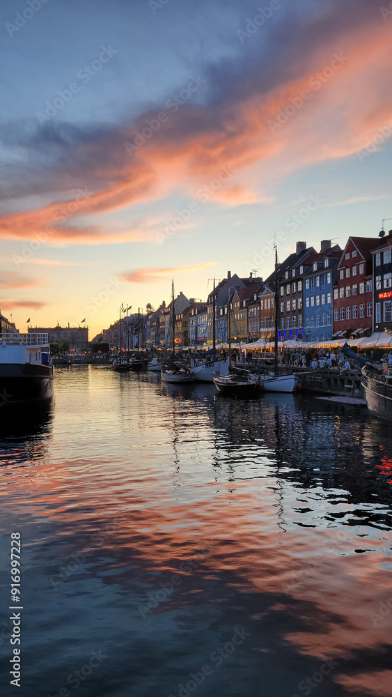 Fotografie Sunset at the Nyhavn, Copenhagen