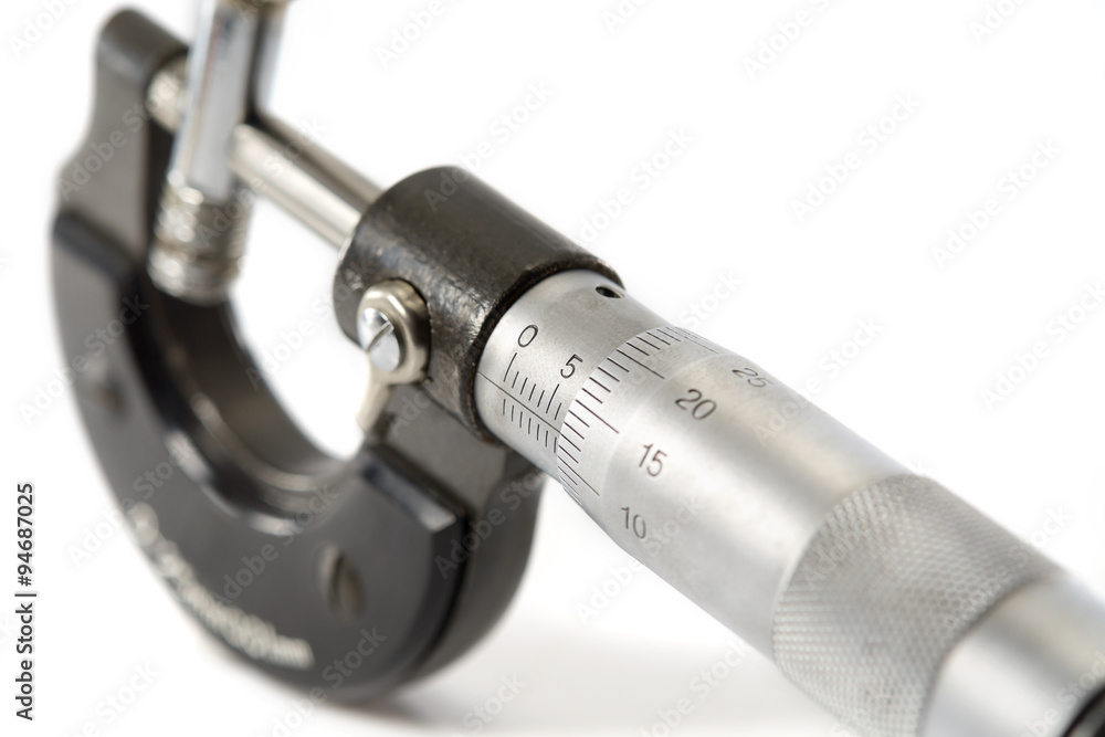 Fotografie Micrometer/Used and dirty micrometer, device used to tiny measurements on white background