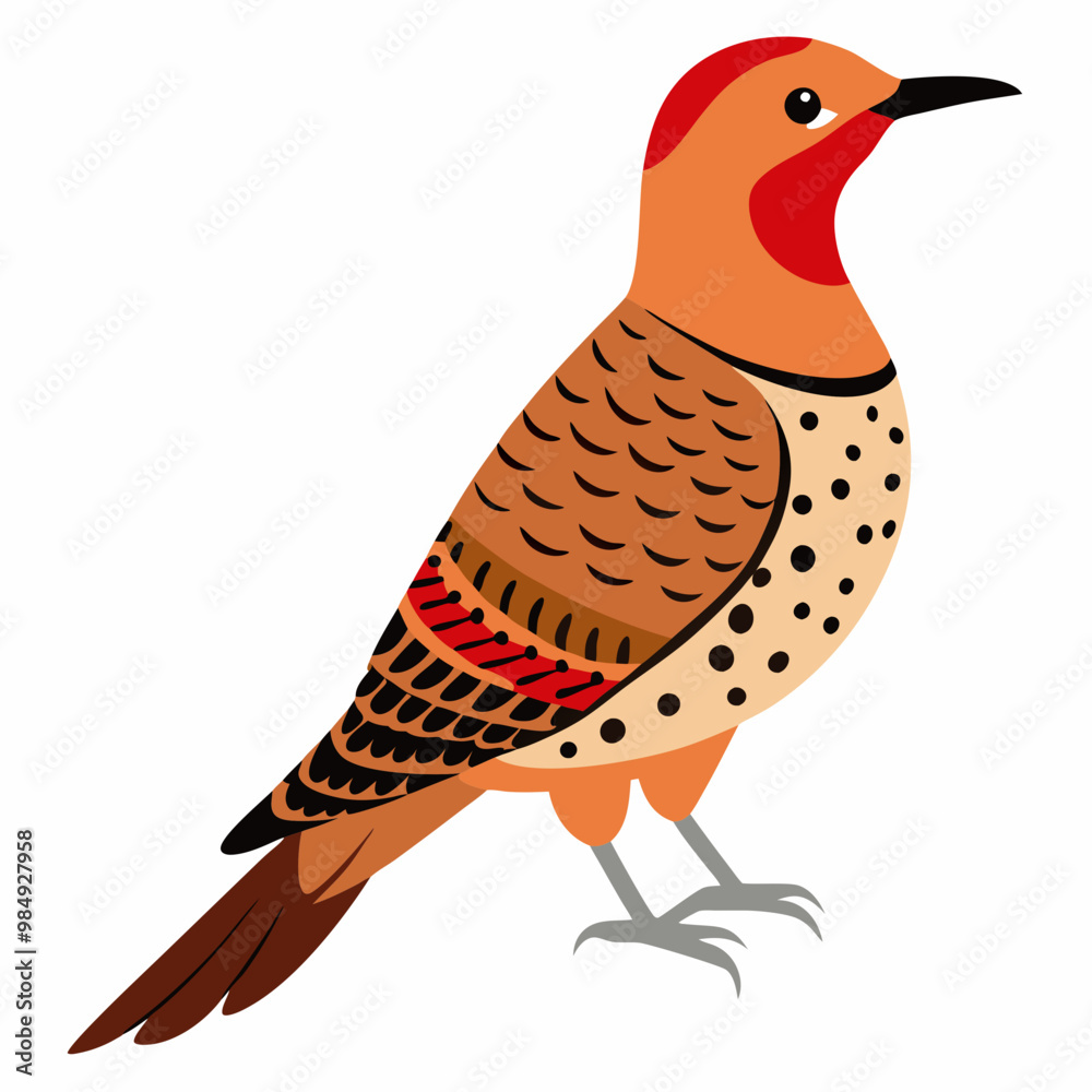 Fotografie This is a detailed vector artwork of a Northern Flicker bird, ideal for wildlife, nature-themed designs, and digital illustration projects showcasing its unique plumage and woodpecker characteristics