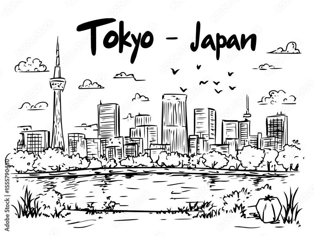 Obraz na plátně tokyo skyline with skytree tower vector illustration