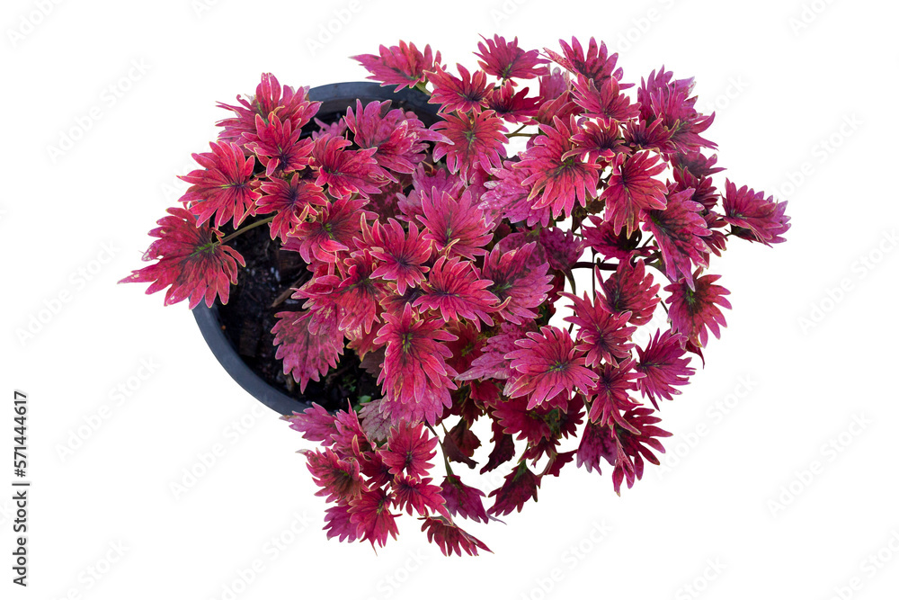 Fotografie Top view of Coleus Forskohlii, Painted Nettle or Plectranthus scutellarioides growing in black plastic pot isolated on white background included clipping path