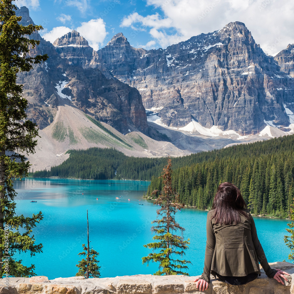 Fotografie Tourist at Moraine Lake in Banff National Park, Alberta, Canada.