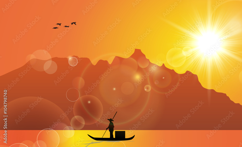 Fotografie Traditional Chinese Fisherman Illustration