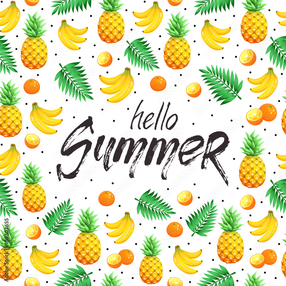 Fotografie Tropical summer objects in square composition with dotted texture on white backgorund