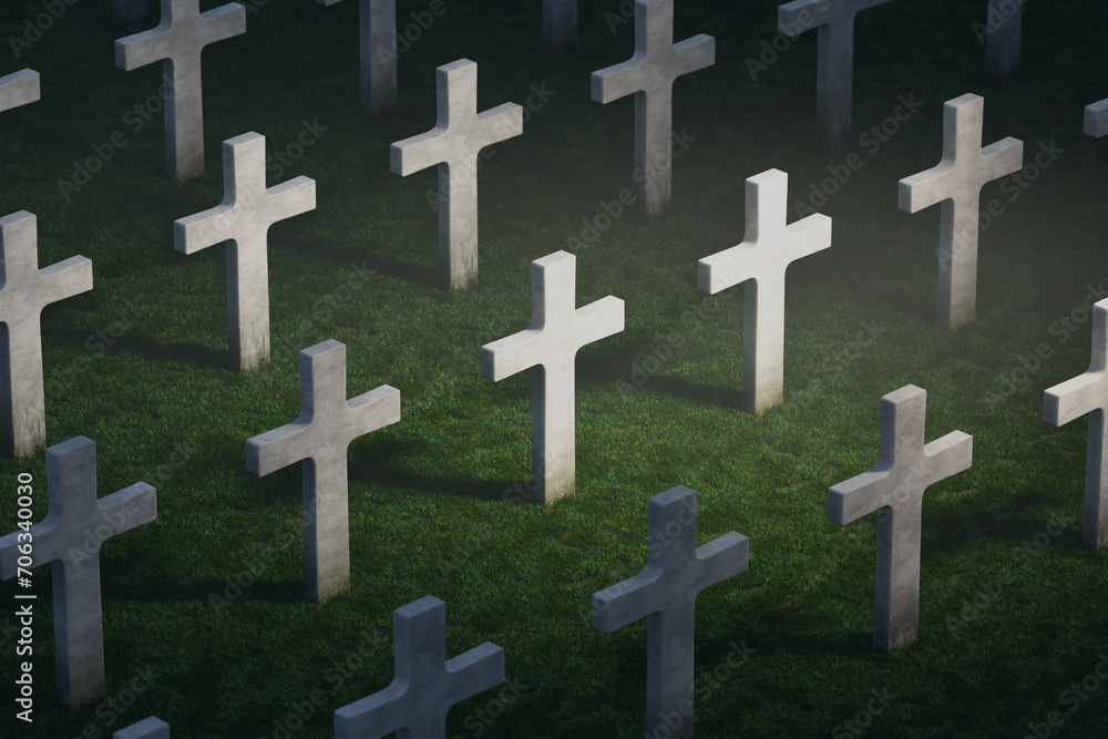 Obraz na plátně Twilight Embrace: Peaceful Cemetery Landscape with Cross Shadows