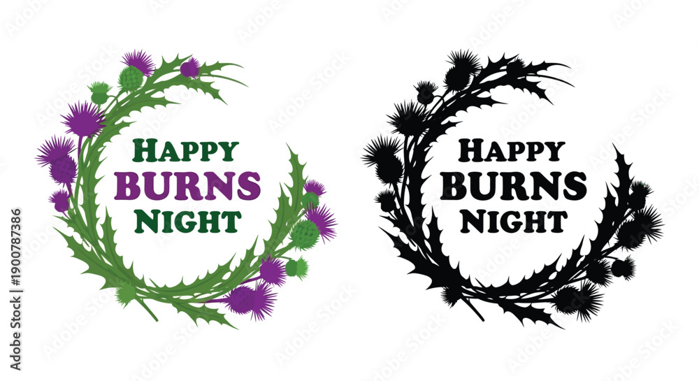 Fotografie Two circular designs featuring thistles and happy burns night text