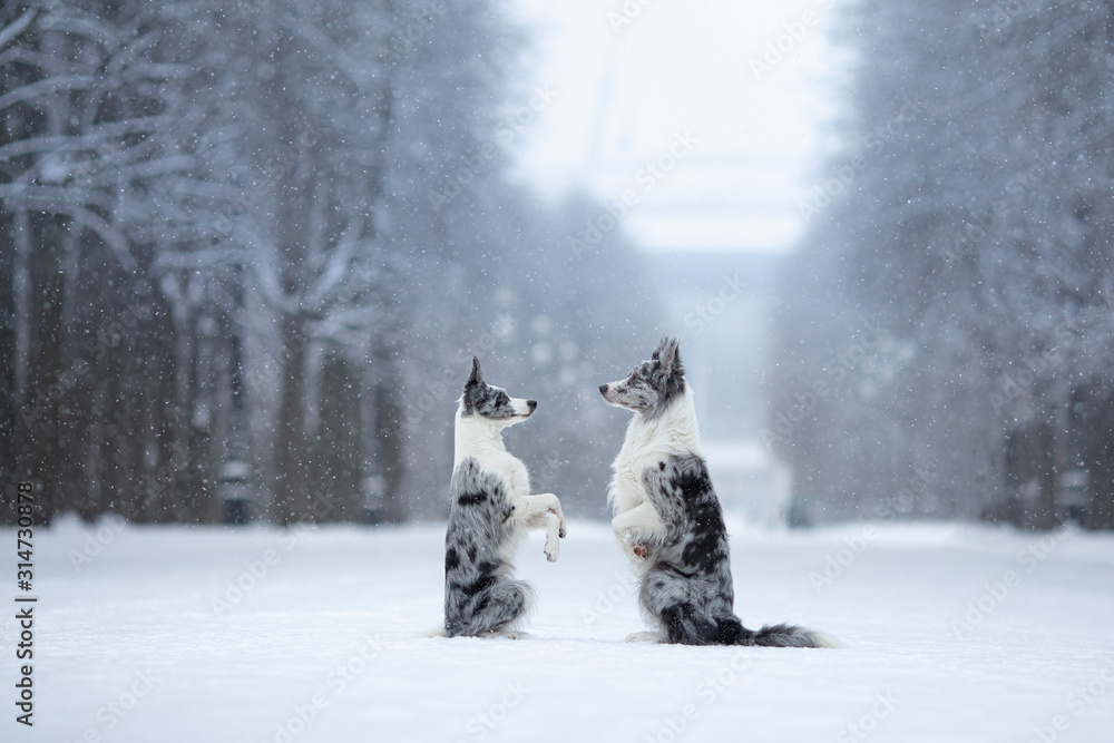 Obraz na plátně two dogs on a park in winter