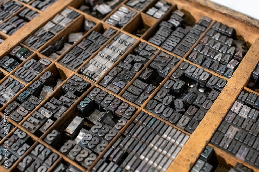 Obraz na plátně typographic mobile characters collected in a drawer for typography