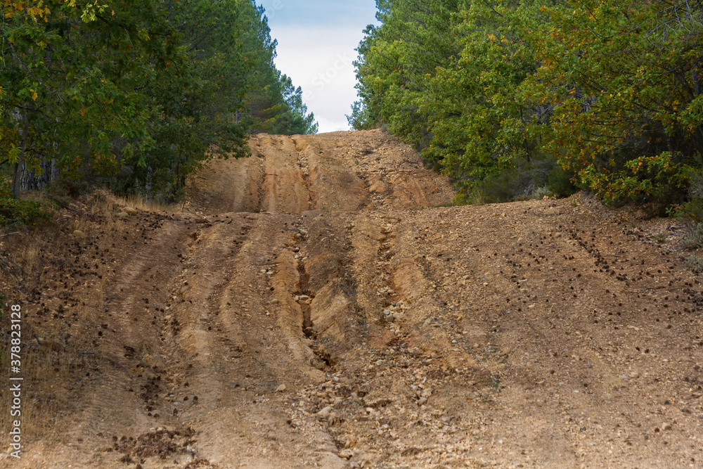 Obraz na plátně Undulating firebreak in an oak and pine forest