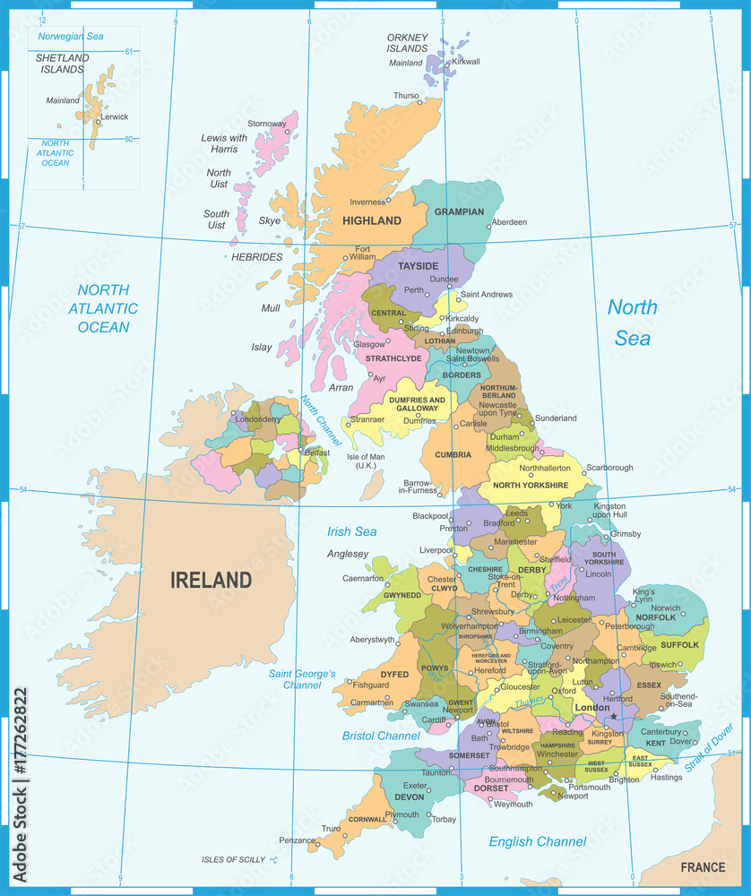 Fotografie United Kingdom Map - Vector Illustration