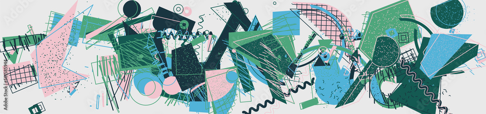 Fotografie Unusual Strange Vector Trendy Geometric Chaos Shapes Composition Background