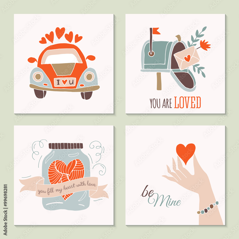Fotografie Valentine's day creative hand drawing greeting card set with car