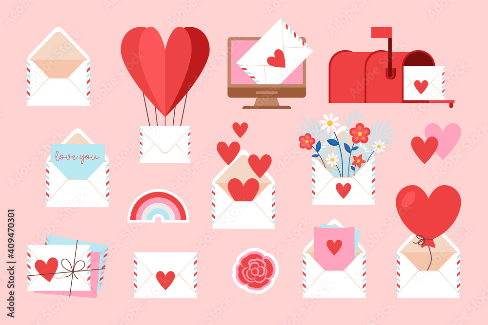 Obraz na plátně Valentine's day love letter and email icons set for web and graphic design