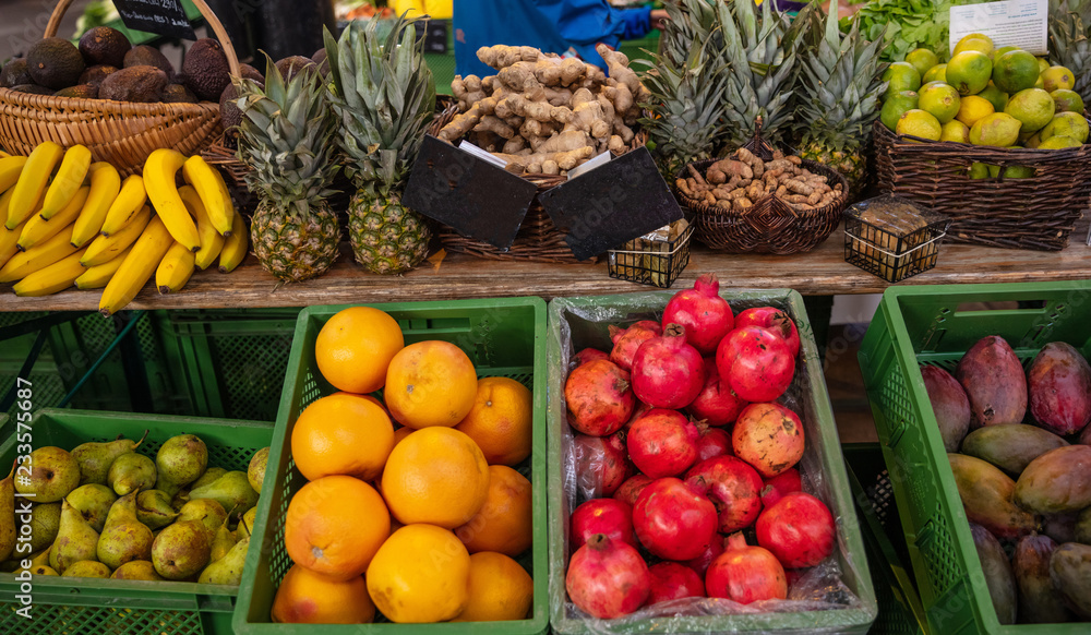 Obraz na plátně Various fruits in local market, Berlin, Germany, wallpaper