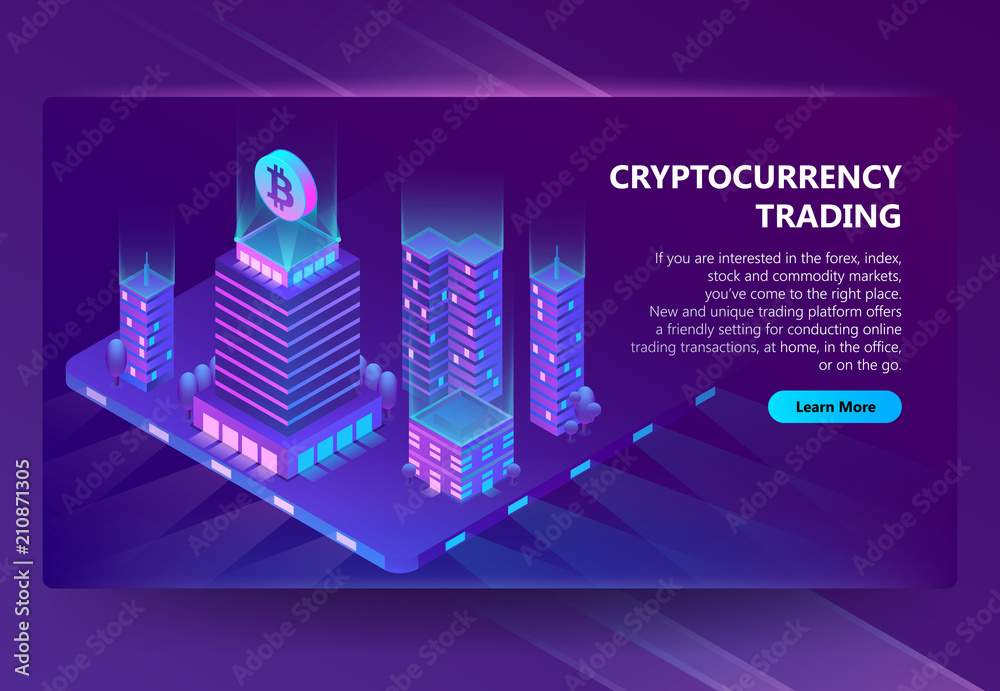 Fotografie Vector 3d isometric template, site construction for cryptocurrency, mining and trading bitcoin
