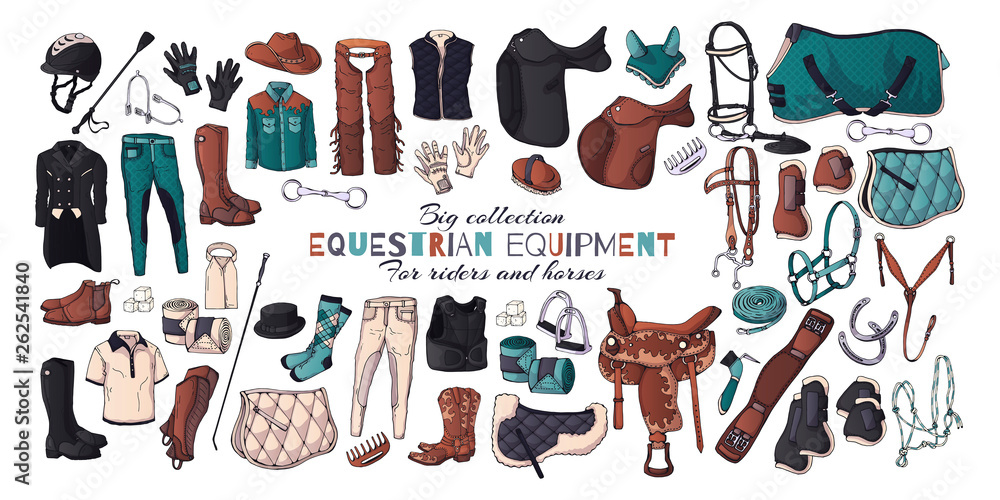 Fotografie Vector illustrations on the equestrian equipment theme.