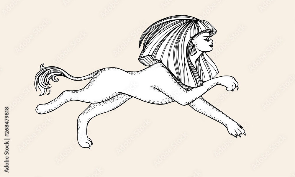 Obraz na plátně Vector lined running sphinx. Hand drawing liner