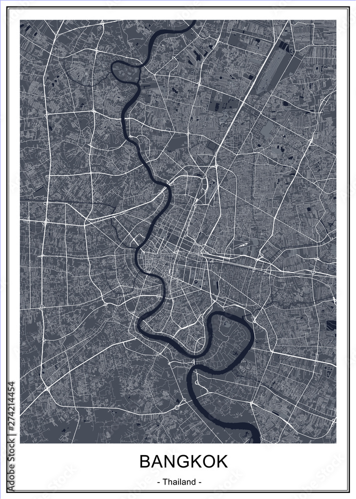 Obraz na plátně vector map of the city of Bangkok, Krung Thep Maha Nakhon, Kingdom of Thailand