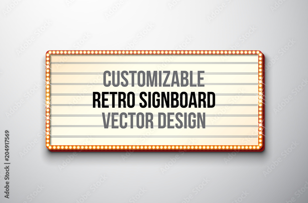 Fotografie Vector retro signboard or lightbox illustration with customizable design on clean background